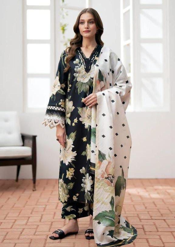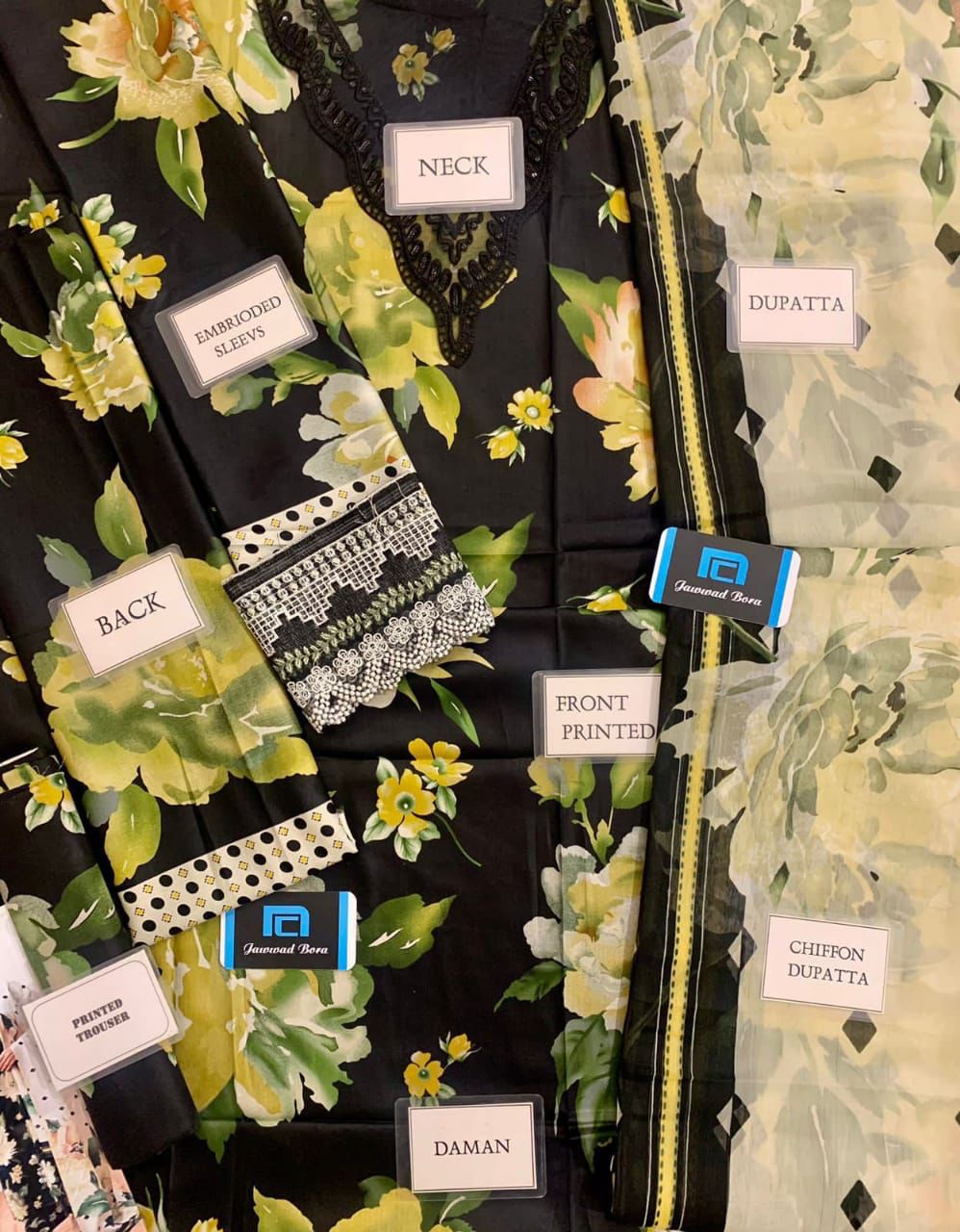 *Printed lawn front with heavy embroidered spengle work neckline