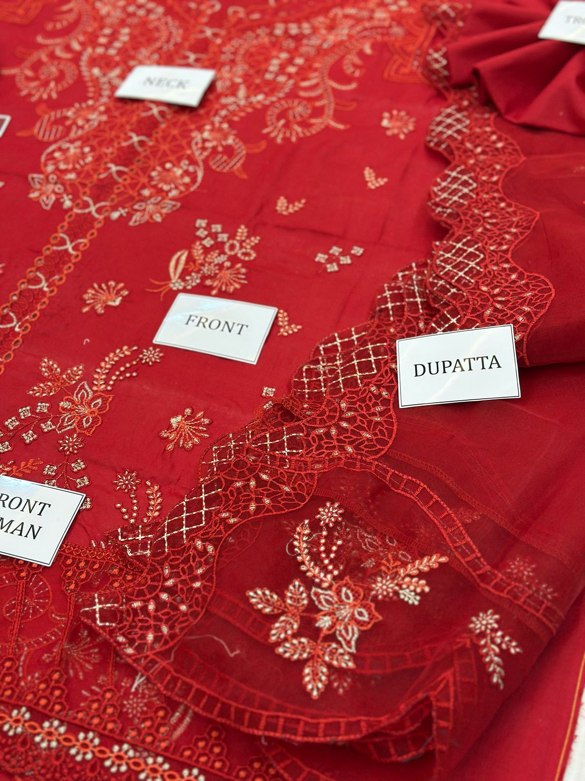 cotton net fully heavy embroidered spengle work dupatta with cut work with 2 side pallou embroidered with centre emroided bunches spengle work lace attach with 4 side satan piping attachment